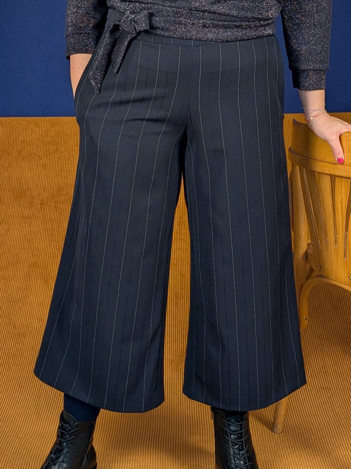 Das Bundmaß für die Culotte entspricht einem Umfang von 98cm – 101cm bei festen Stoffen und 95cm – 101cm bei elastischen Stoffen. Diese Hose hat einen festen Stoff.