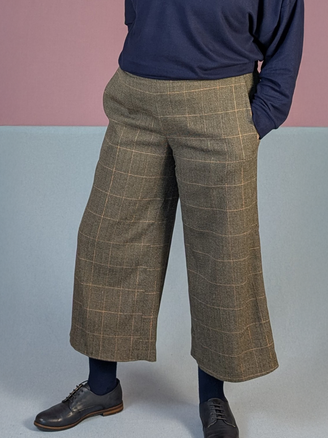 Im Spielraum der Angaben kannst du die Culotte super auch tiefer tragen, soweit dein Hüftmaß 95cm – 98cm nicht unterschreitet.