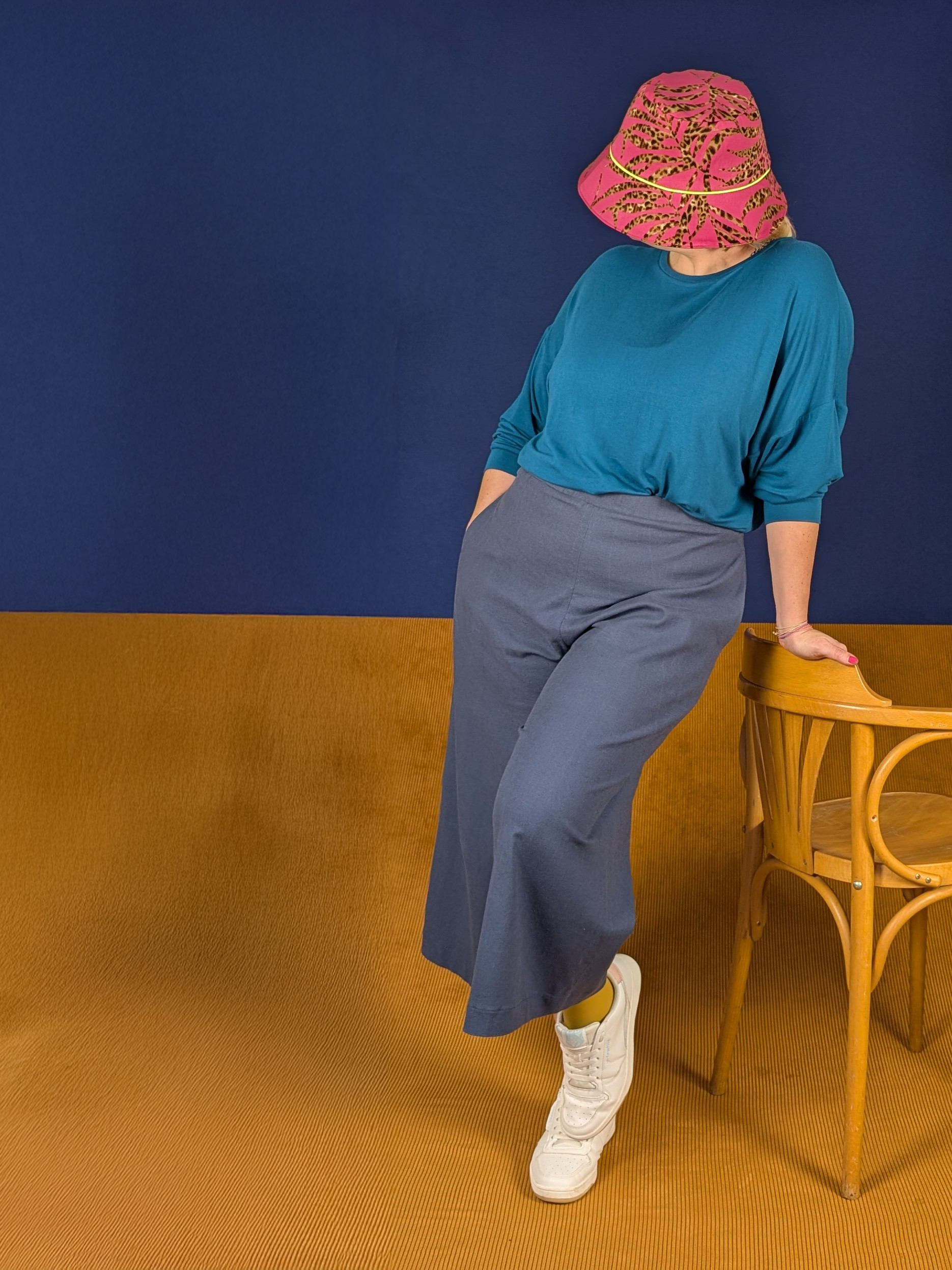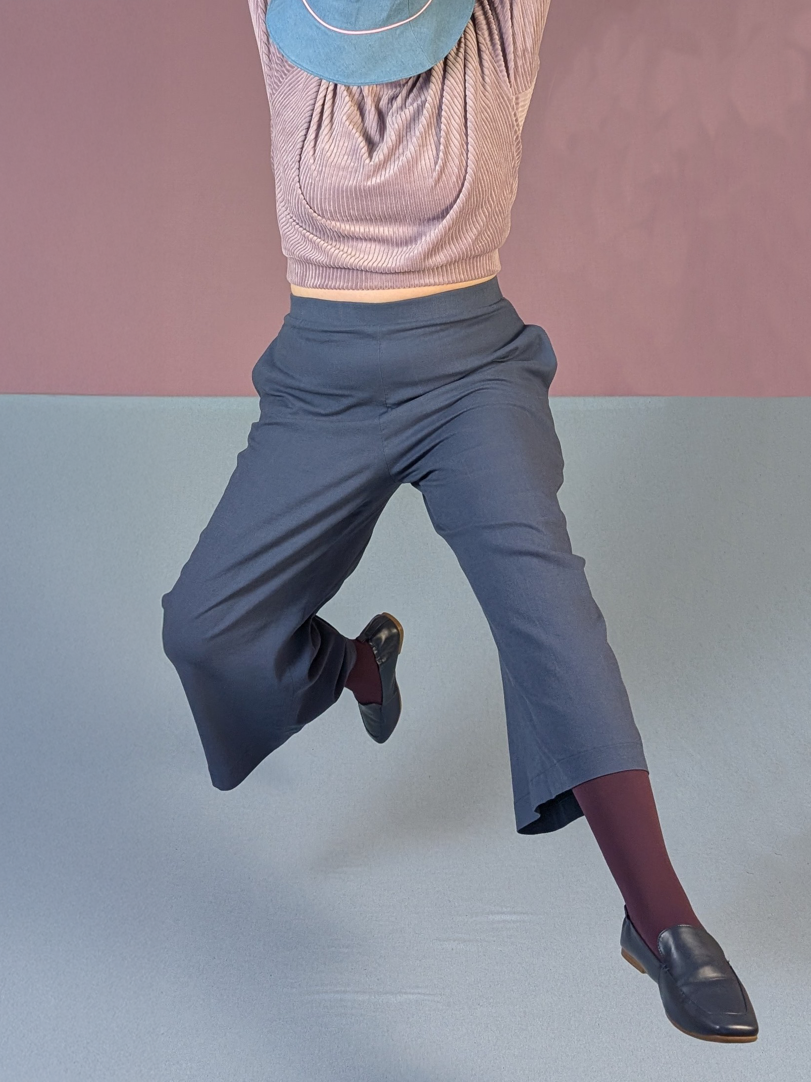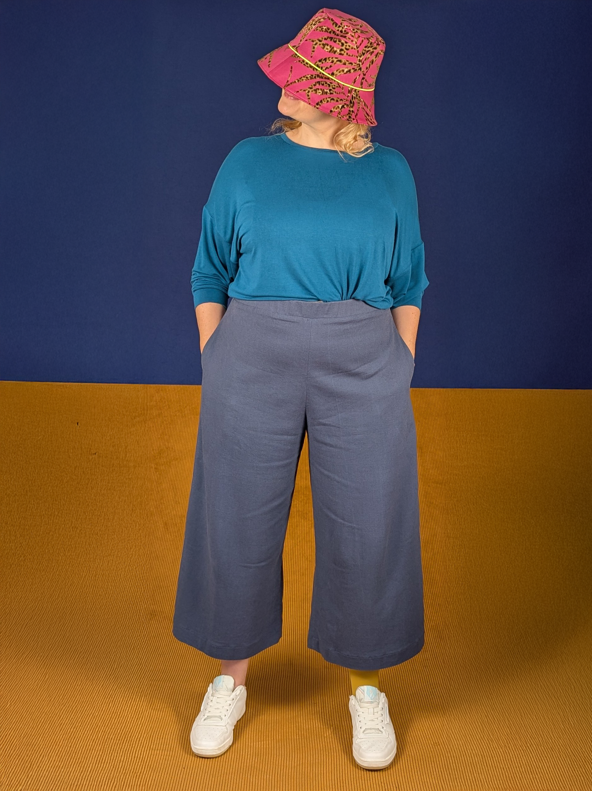 Die High Waist Culotte basiert ebenfalls auf dem Grundschnitt aller Lolian Hosen und entspricht im Hüftbereich und der Beinlänge komplett der Culotte. Aufgrund der gehobene Bundhöhe wird diese Hose jedoch nicht auf der Hüfte getragen.