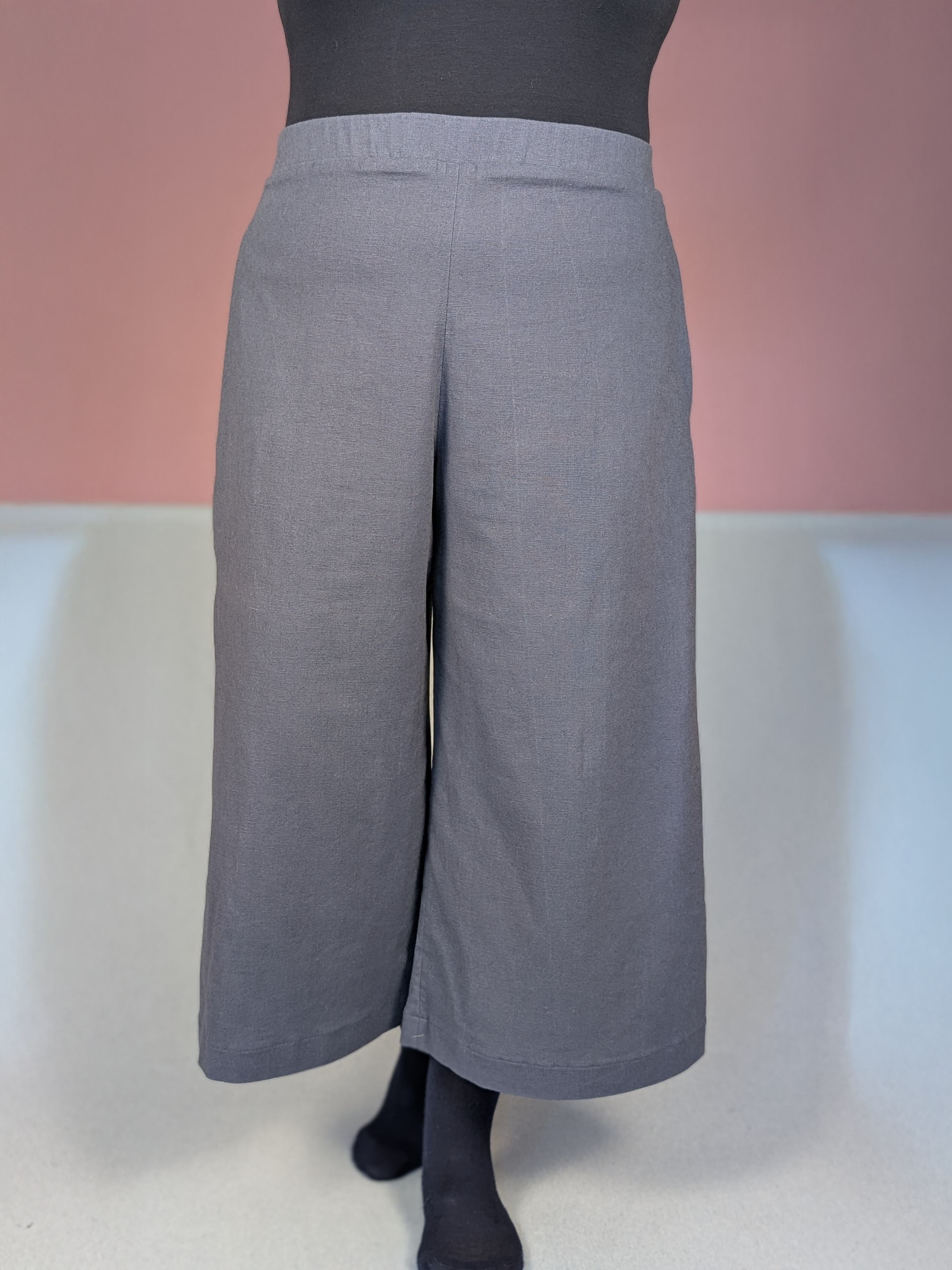 Das Bundmaß für die High Waist Culotte liegt Höher als bei unseren anderen Hosen und entspricht bei diesem Einzelstück aus elastischem Stoff einem Umfang von 92cm – 98cm.
