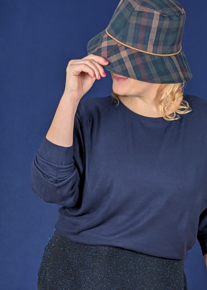 Mit dem Cozy wollten wir einen weiten bequemen Pullover ohne Oversizeoptik, in dem genügend Platz für Schultern, Brust und Oberarme ist und der trotzdem an der Hüfte angenehm anliegt.
